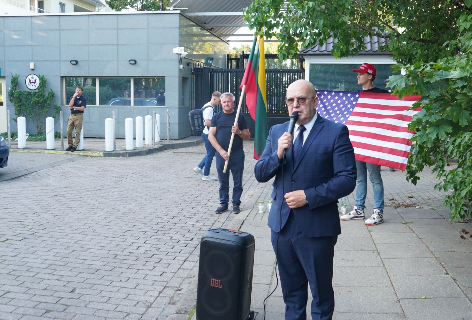 Taip pat jis atkreipė dėmesį į tai, jog susirinkę prie ambasados žmonės padarė tai, ką turėjo daryti Lietuvos valdžia (iš pastarosios irgi nė vienas nepasirodė) - jie pasiuntė žinią Amerikai, taip prisidėdami prie savo Tėvynės gynybos stiprinimo. Susirinkusieji, I.Vėgėlės nuomone, padarė žymiai daugiau negu per savo vizitus į Ameriką sugebėjo nuveikti KAM vadovė Dovilė Šakalienė.