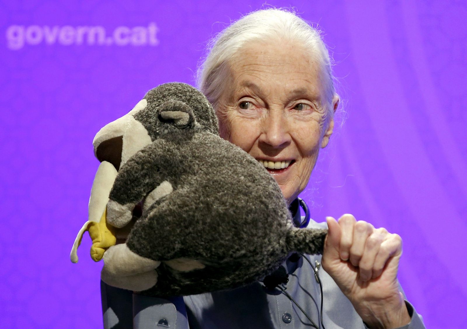 Paskutiniame vaizdo įraše, paskelbtame prieš mirtį, J. Goodall, apsirengusi savo firminiu žaliu drabužiu, kalbėjo klausytojams: „Kai kurie iš mūsų galėtų pasakyti „Bonjour“, kai kurie iš mūsų galėtų pasakyti „Guten Morgen“ ir t. t., o aš galiu pasakyti: „Hoo-hoo-hoo-hoo-hoo-hoo-hoo-hoo-hoo! Tai reiškia „Labas rytas“ šimpanzių kalba.“